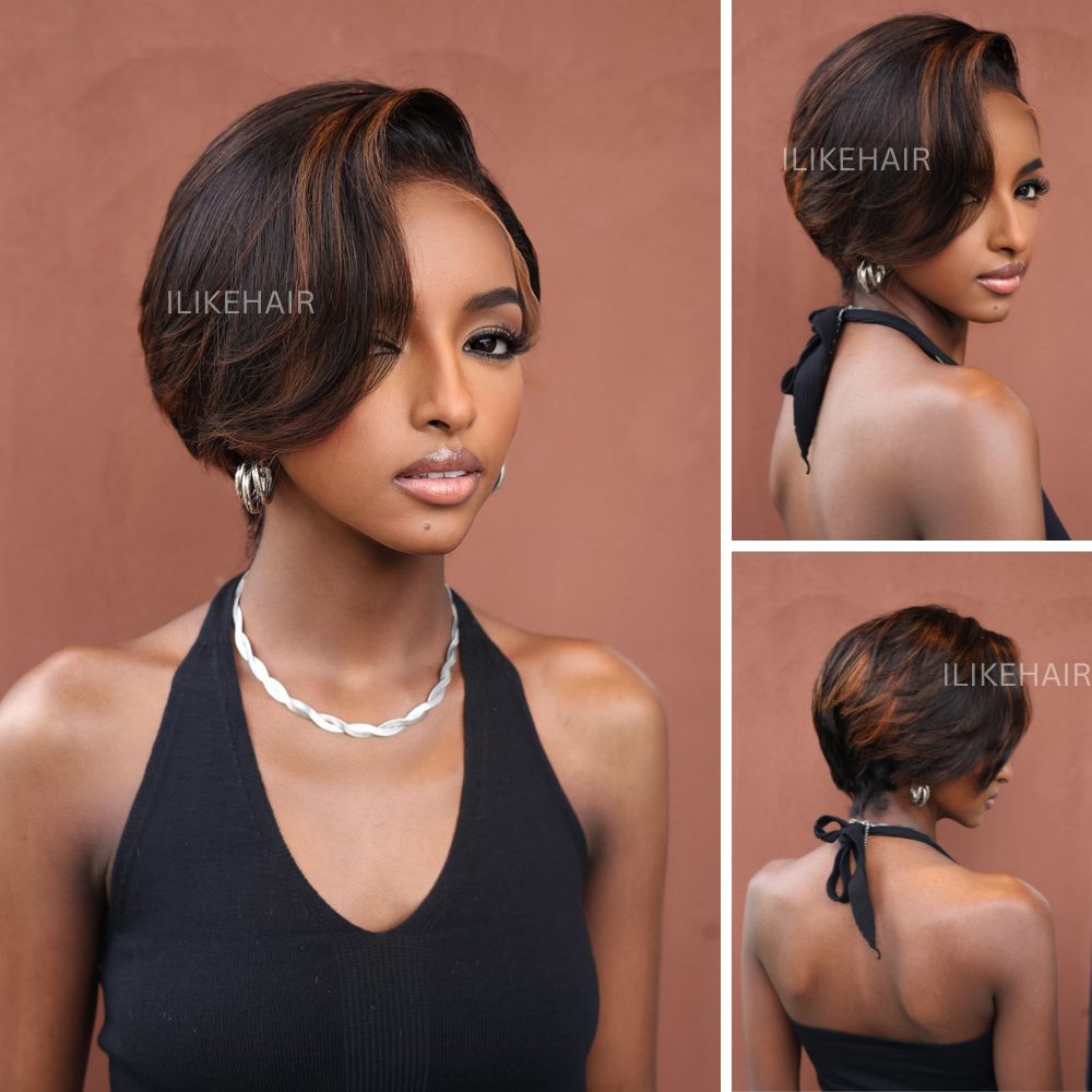 • Boss Lady Brown Highlights Layered Pixie Cuts 13x4 Lace Front Wig