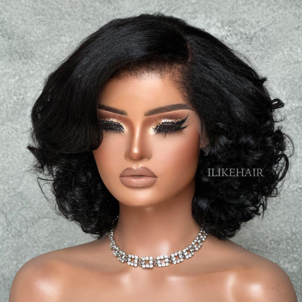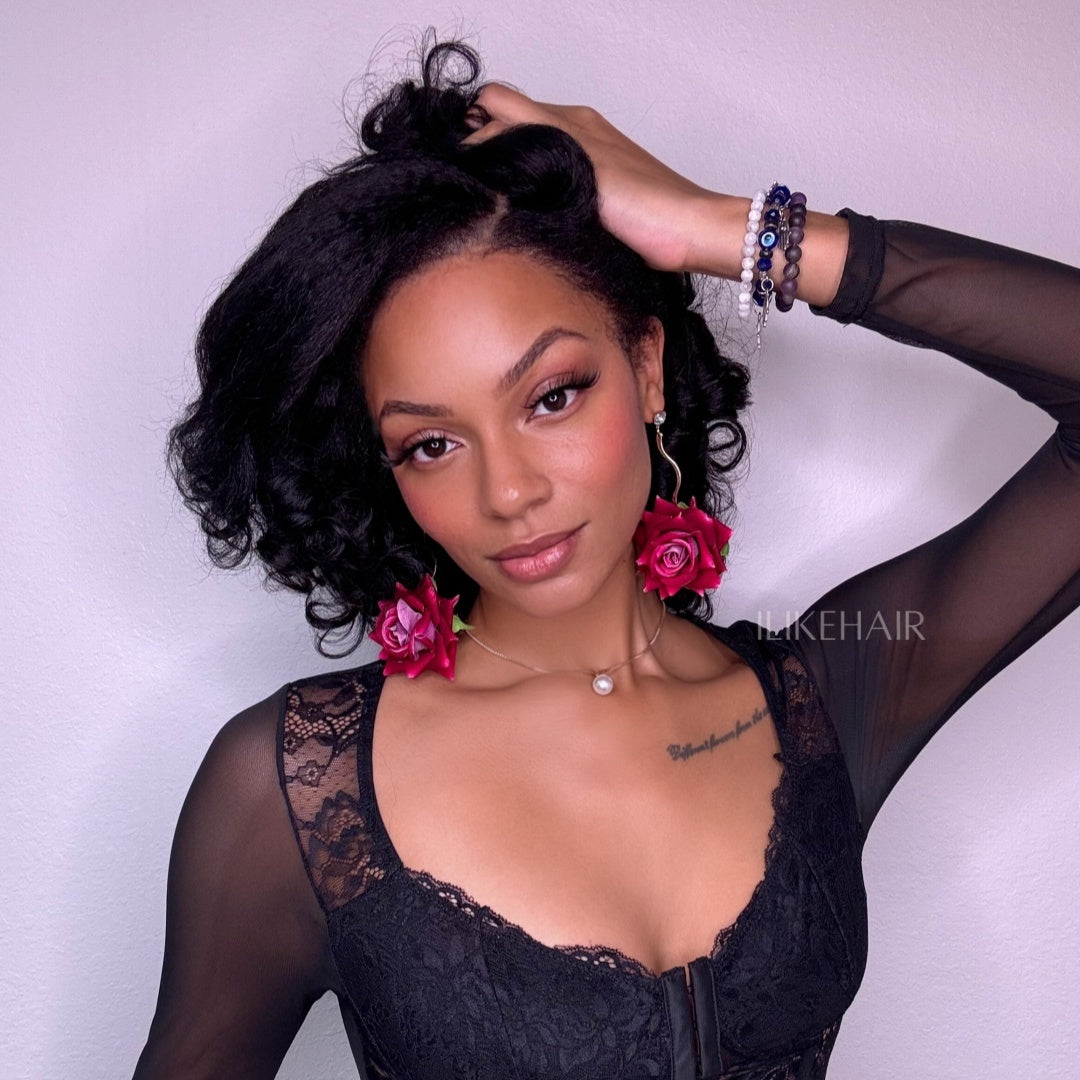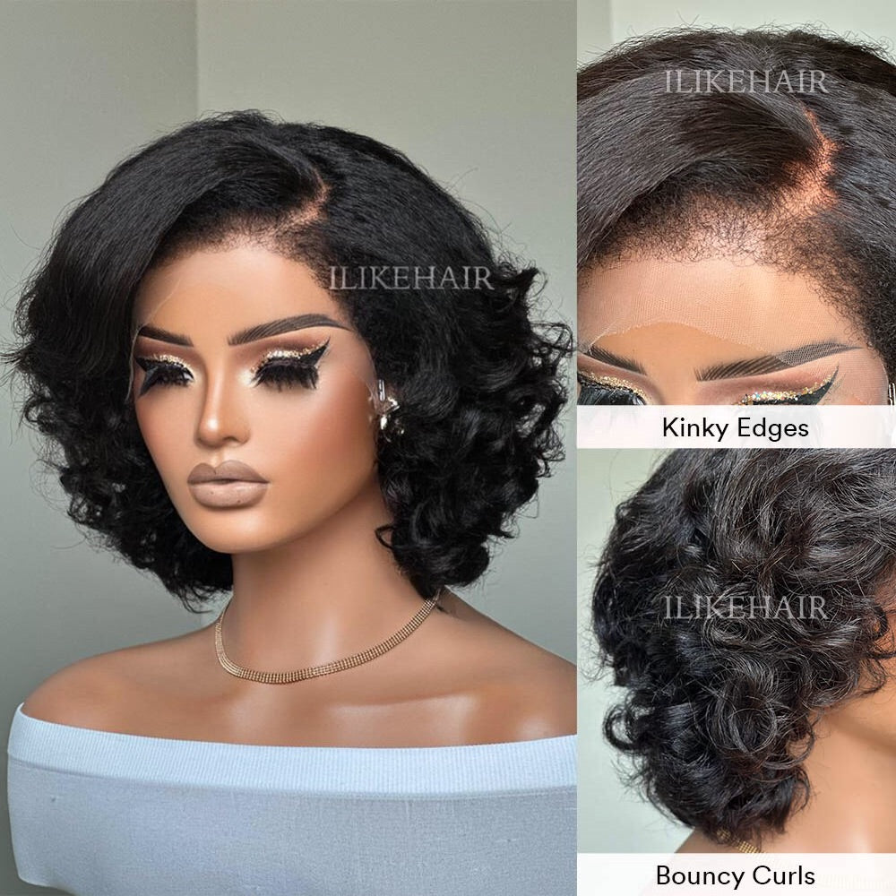 • Short Layered Bouncy Curly With Kinky Edges HD Lace Wig