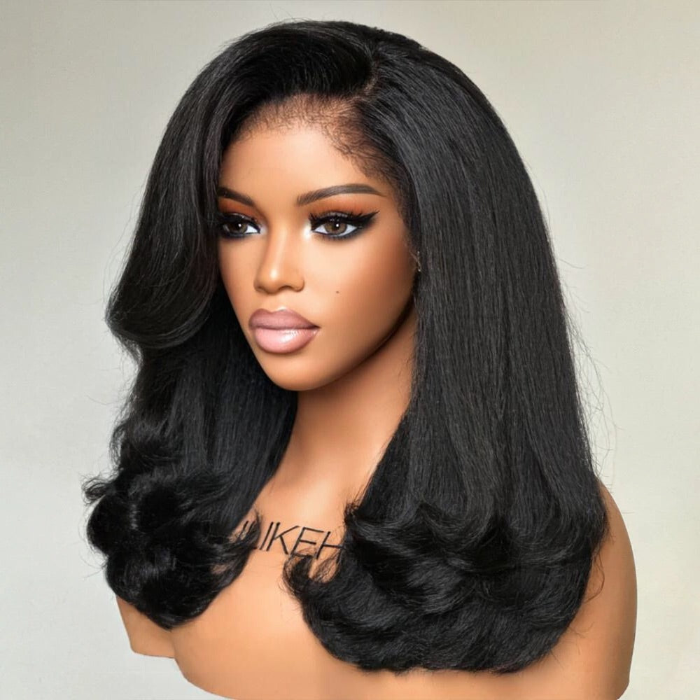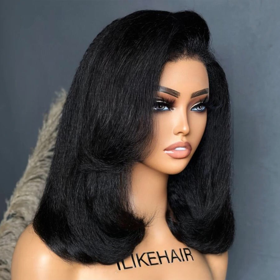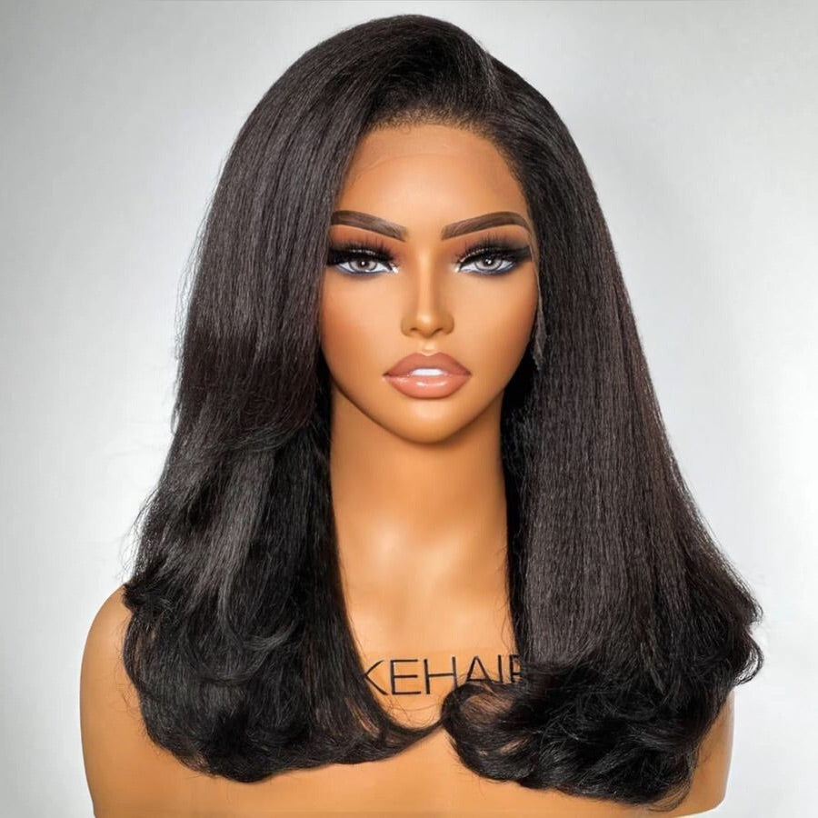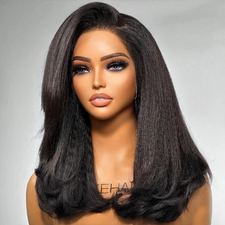 • Trendy Layered Blowout Kinky Straight HD Lace Front Kinky Edges Wig