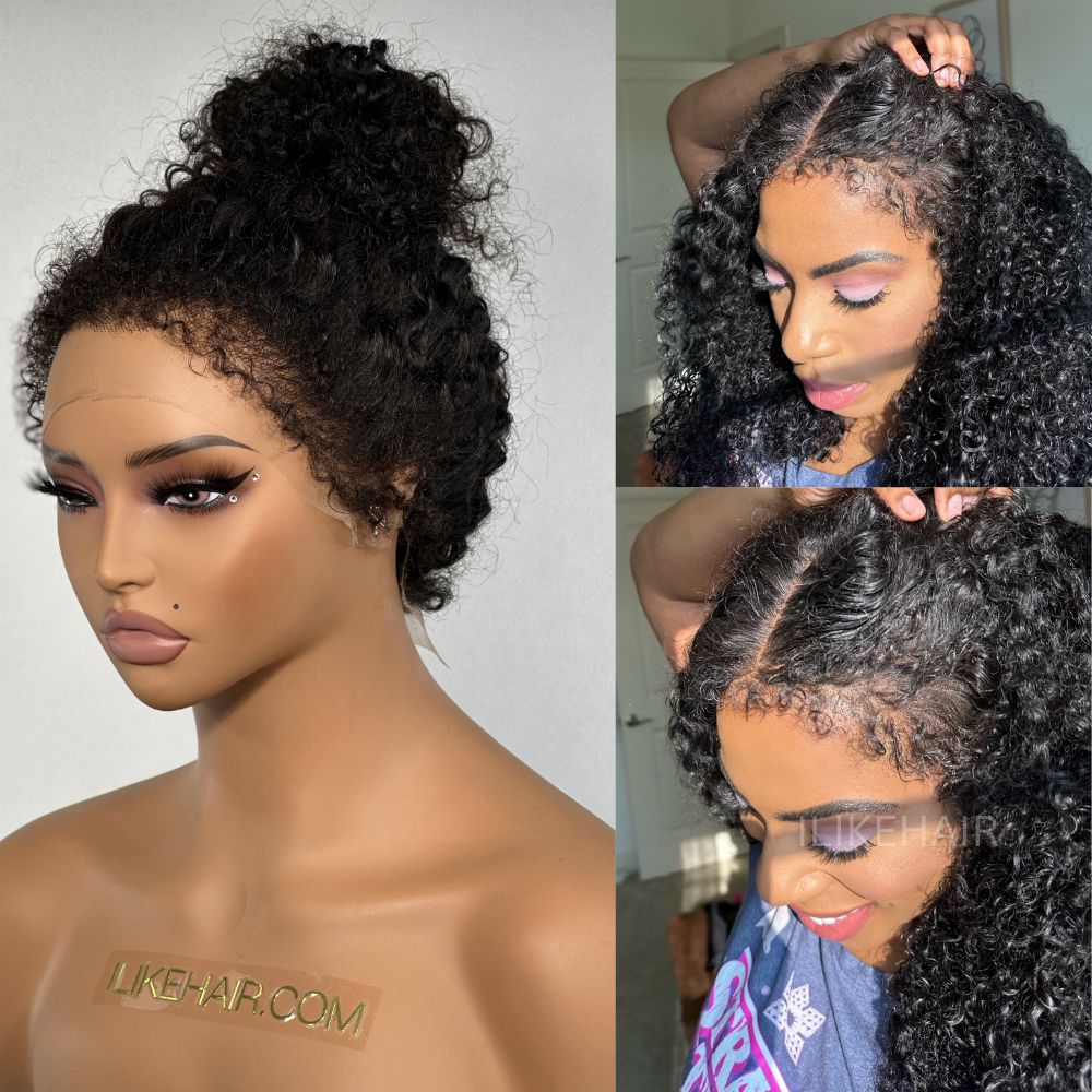 • Ventilated Realistic Curly 13x4 Lace Frontal With Curly Edges Wig