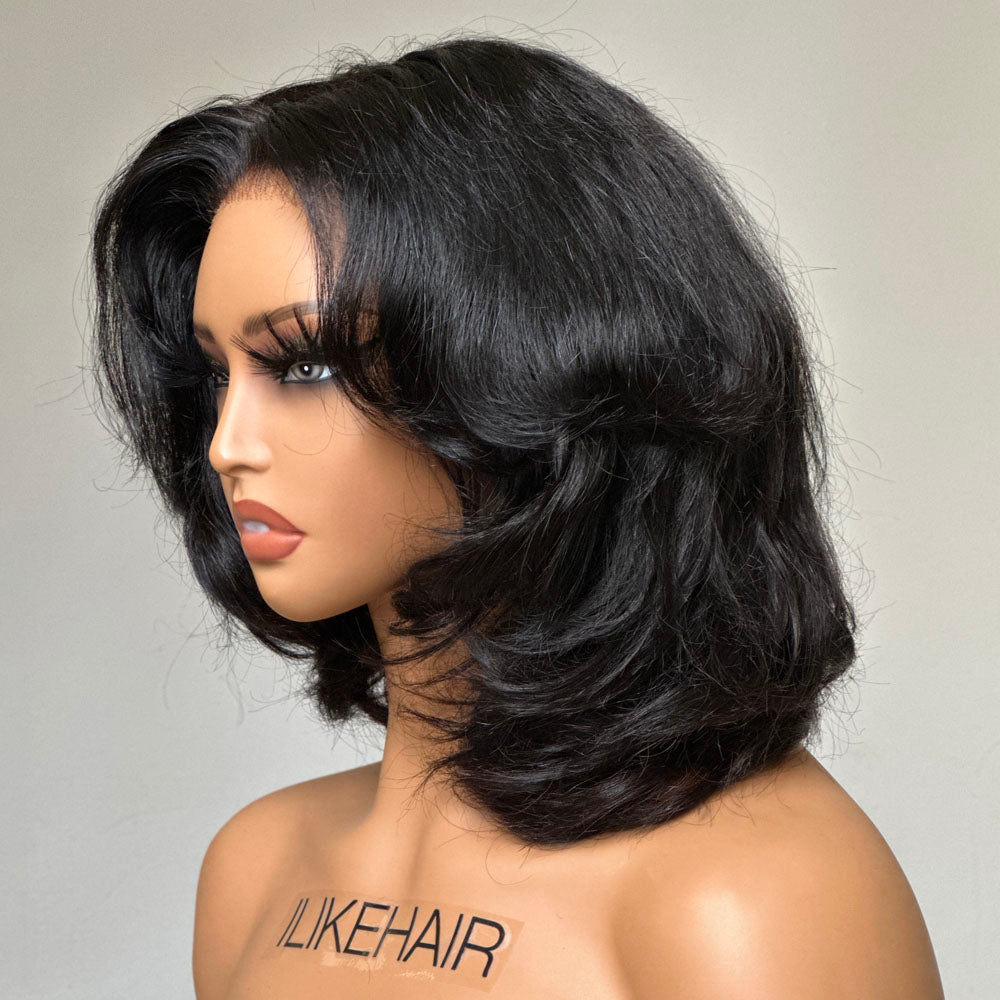 • Put on & Go Layered Wavy Bob Pre Cut Lace Closure Wig
