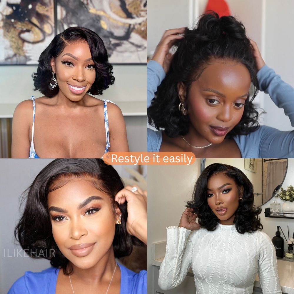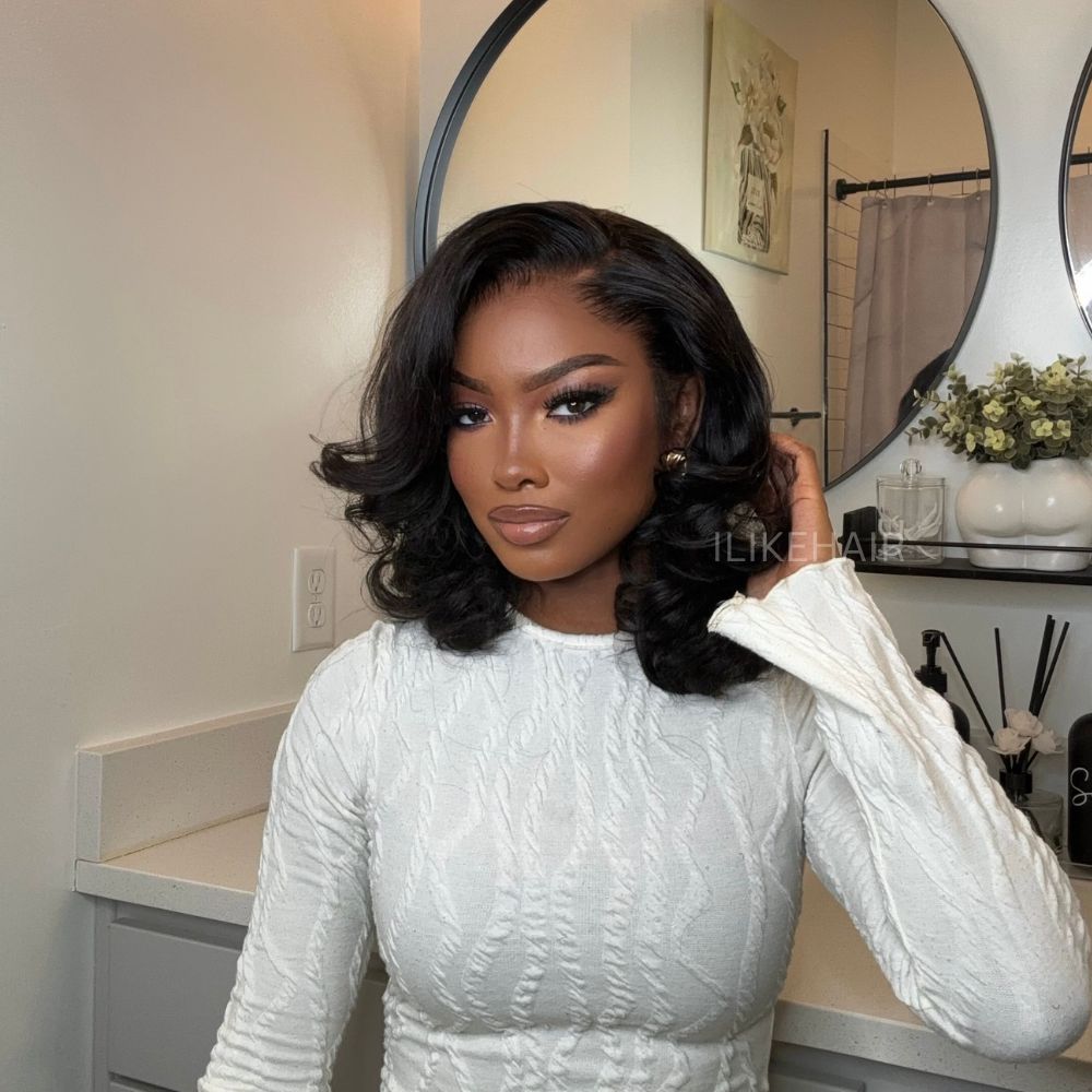 • Designer Layered Bob Short Wavy Lace Wig