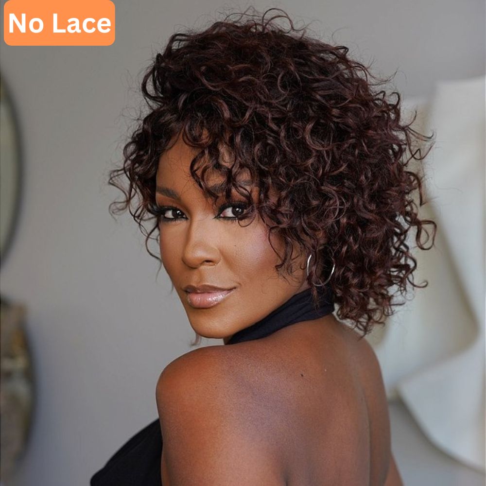• Put On & Go Ombre Reddish Brown Pixie Curly Wig With Bangs