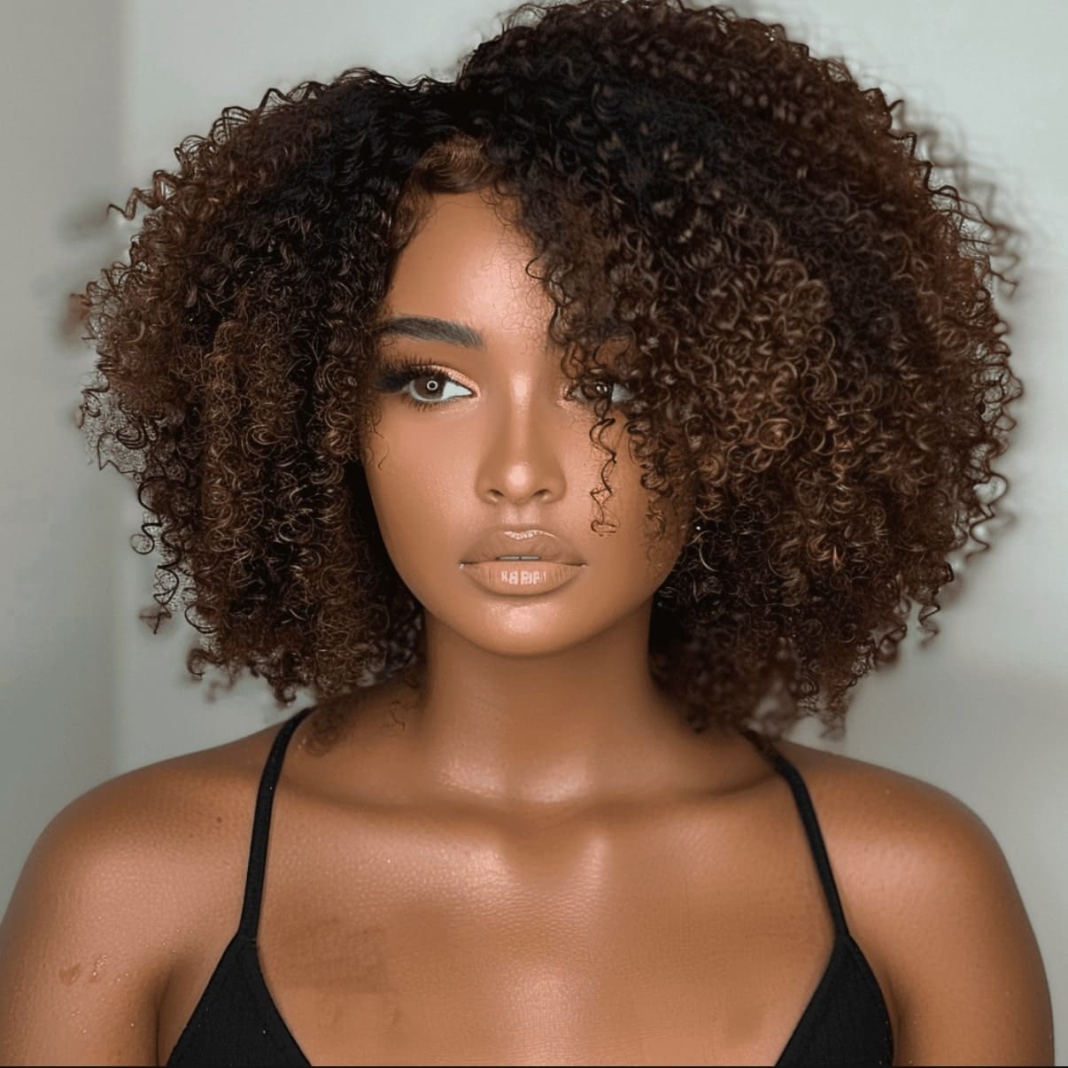 • Put on & Go Ombre Brown Jerry Curly Bob Lace Closure Wig